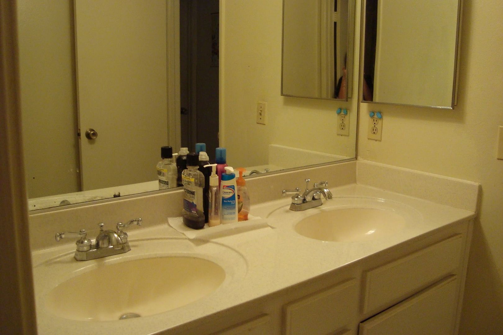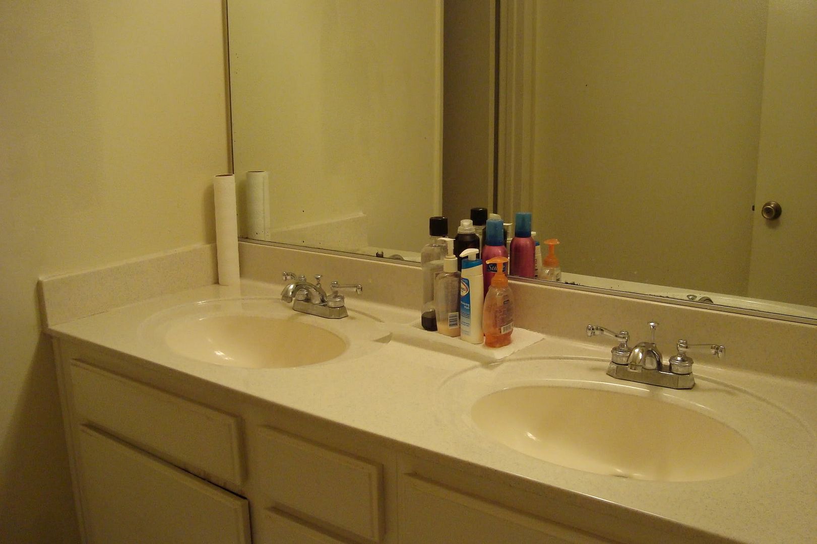 It was about time I did an all out cleaning of my bathroom. Here's a peek; boring and plain not very special.